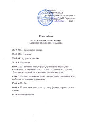 Начальник летнего оздоровительного лагеря «Надежда» Николаевич Ольга Владимировна
